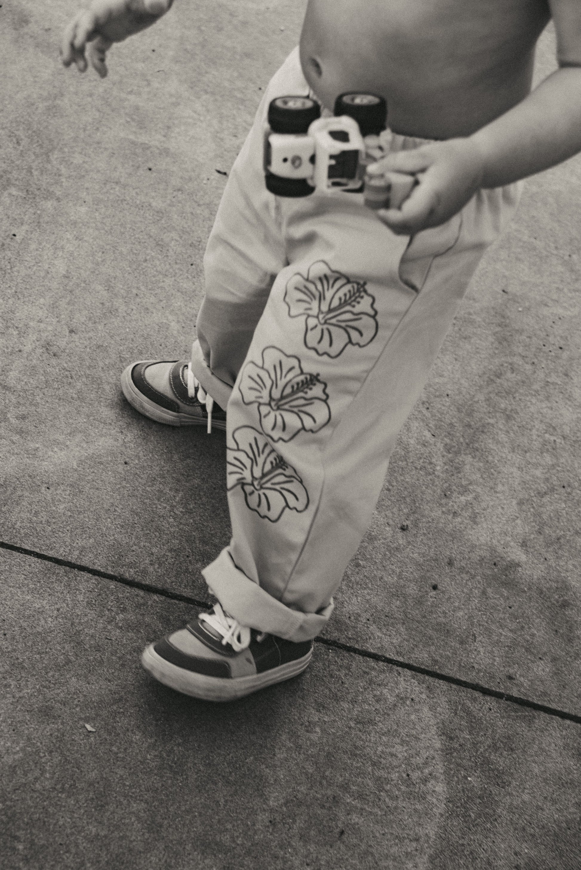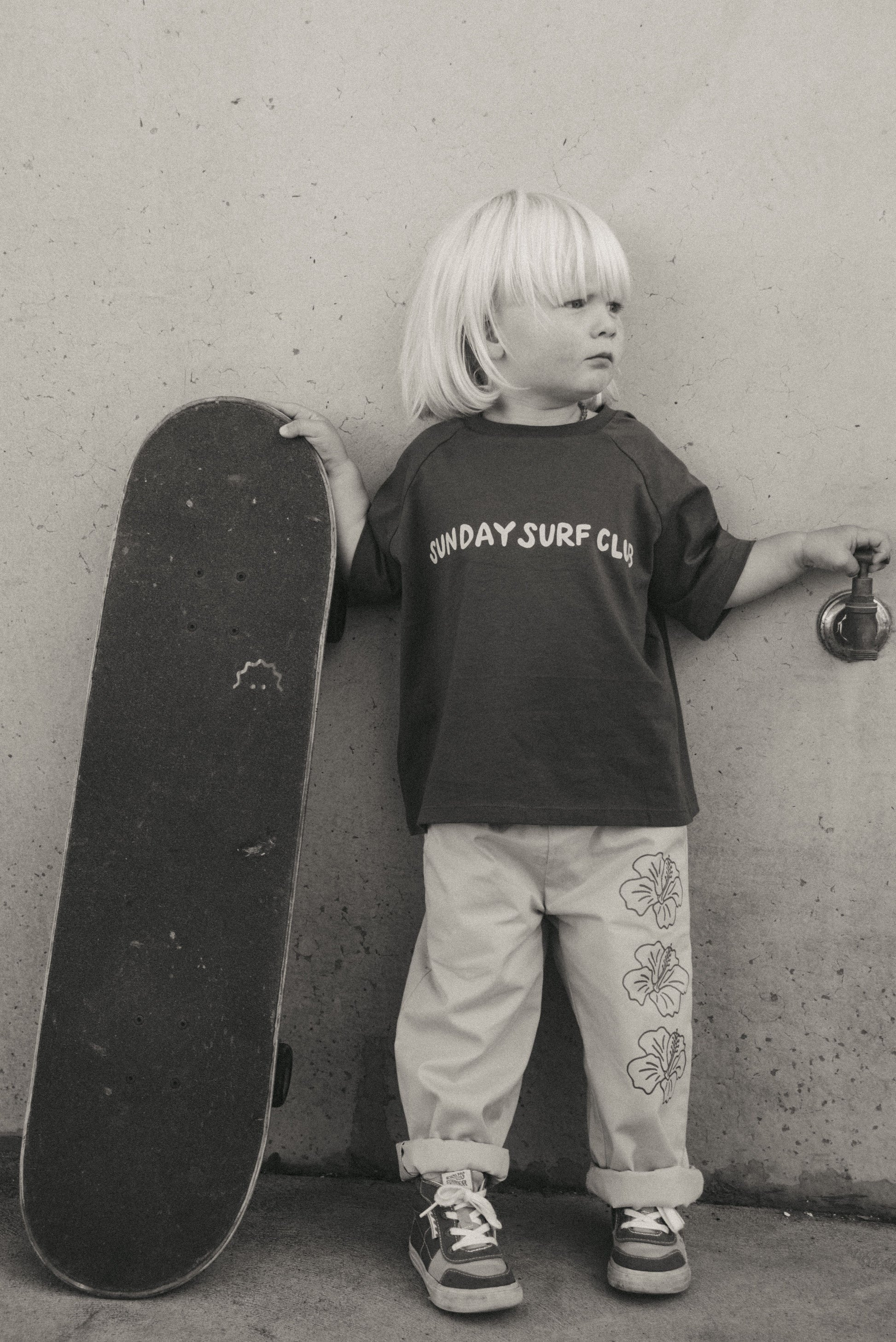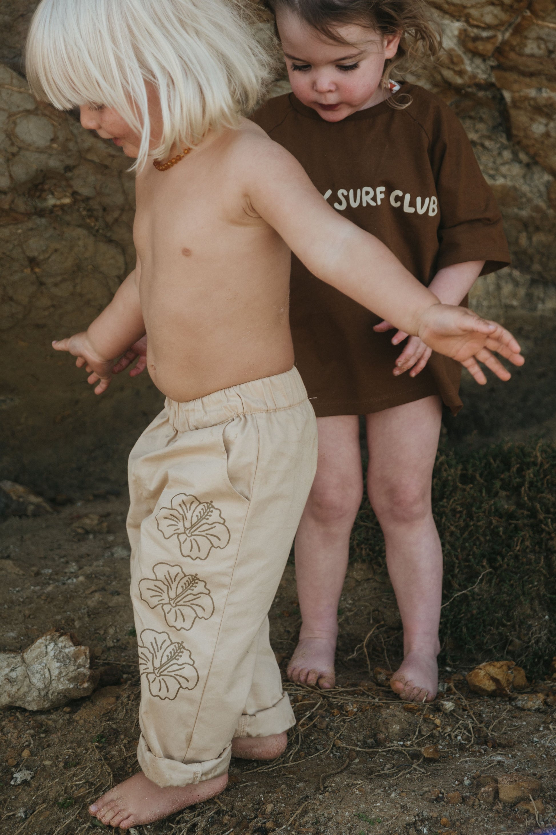 The Sunday Surf Club Hibiscus pants are the perfect balance of comfort and function. With an elasticated waistband and roomy cut, they’re designed for growing kids who never stop moving. Made from durable cotton twill with just the right weight, they’re easy to wear year-round.